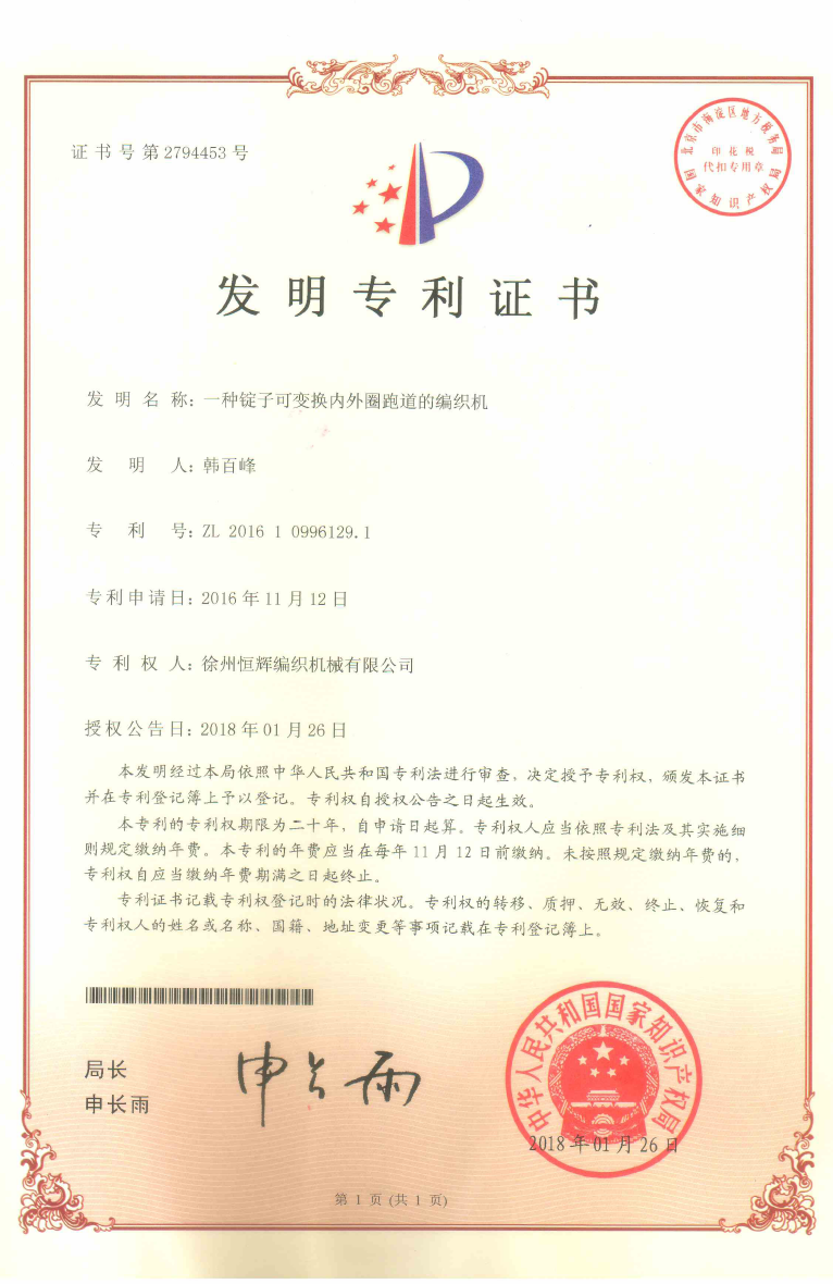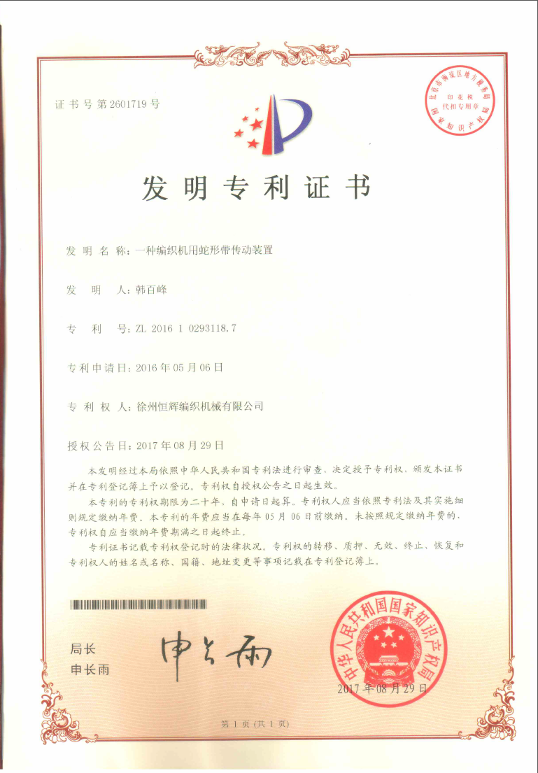 证书号第2601719号
